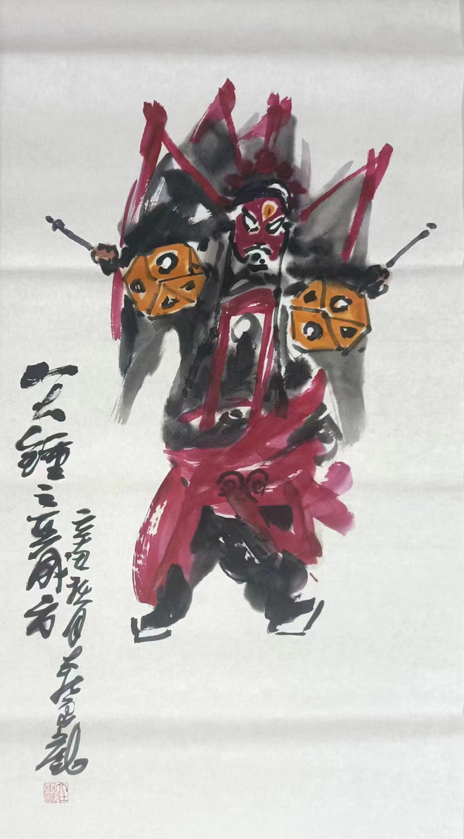 苗大壮(焦作沁阳人)1972年生,中国戏曲人物画第三代传承人。(关良再传弟子,刘石平入室弟子(2007年经阎正先生指导,辞去工作,拜在刘石平门下,随恩师隐居山林学画长达十年之久)。2017年下山,首次在郑州文化馆举办戏曲人物画年展,引起社会关注。后陆续受邀在长春、上海、沁阳等多地举办个人戏曲人物画展览,目前是戏缘app首席签约画家,河南省美术家协会会员,河南省戏曲声音博物馆艺术顾问,名人汇副主席,洛阳理工学院艺术设计学院客座教授,焦作工贸学院特聘讲师,上海市松江区永丰文化导师。海峡两岸书画交流爱心大使。作品被国家大剧院及多家博物馆、纪念馆、艺术机构、国内外收藏家、表演艺术家及友人收藏定制。